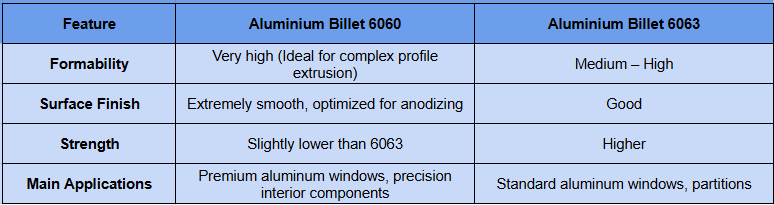 Because of these advantages, 6060 billet is widely used by extrusion plants that produce high-end architectural aluminum profiles.